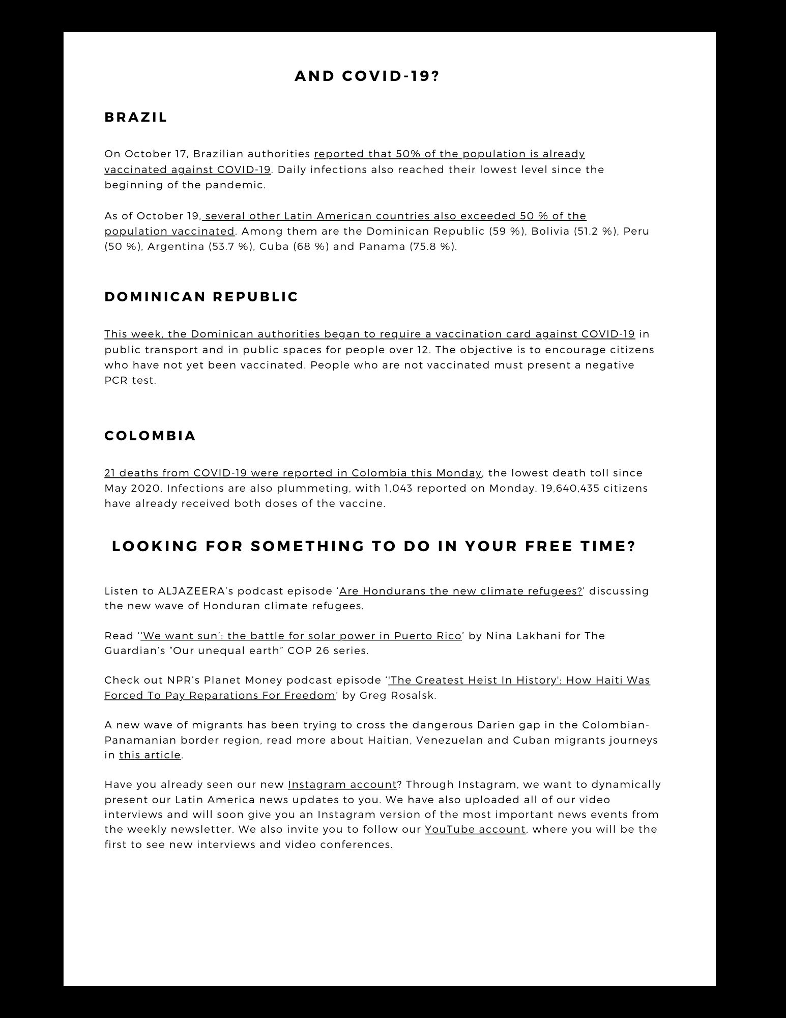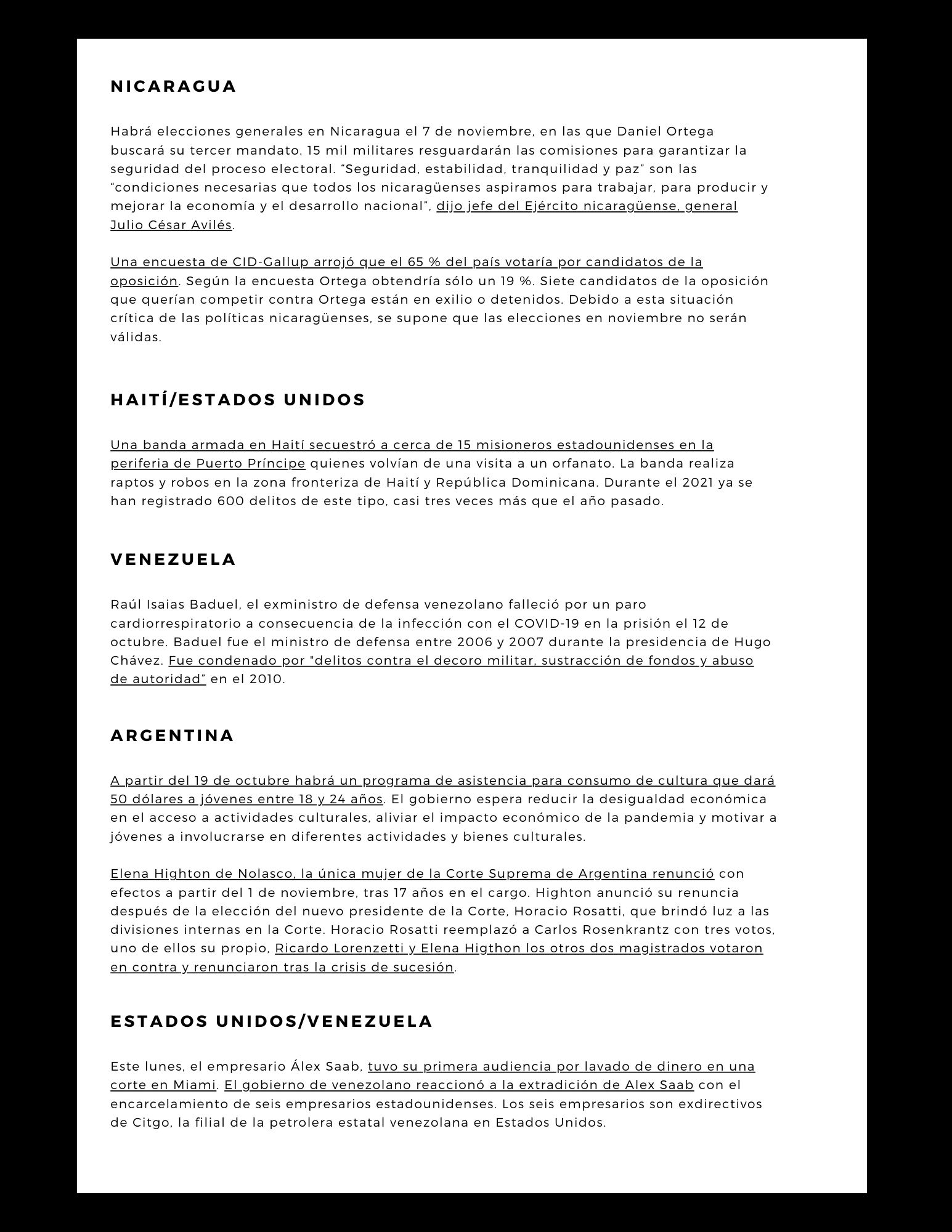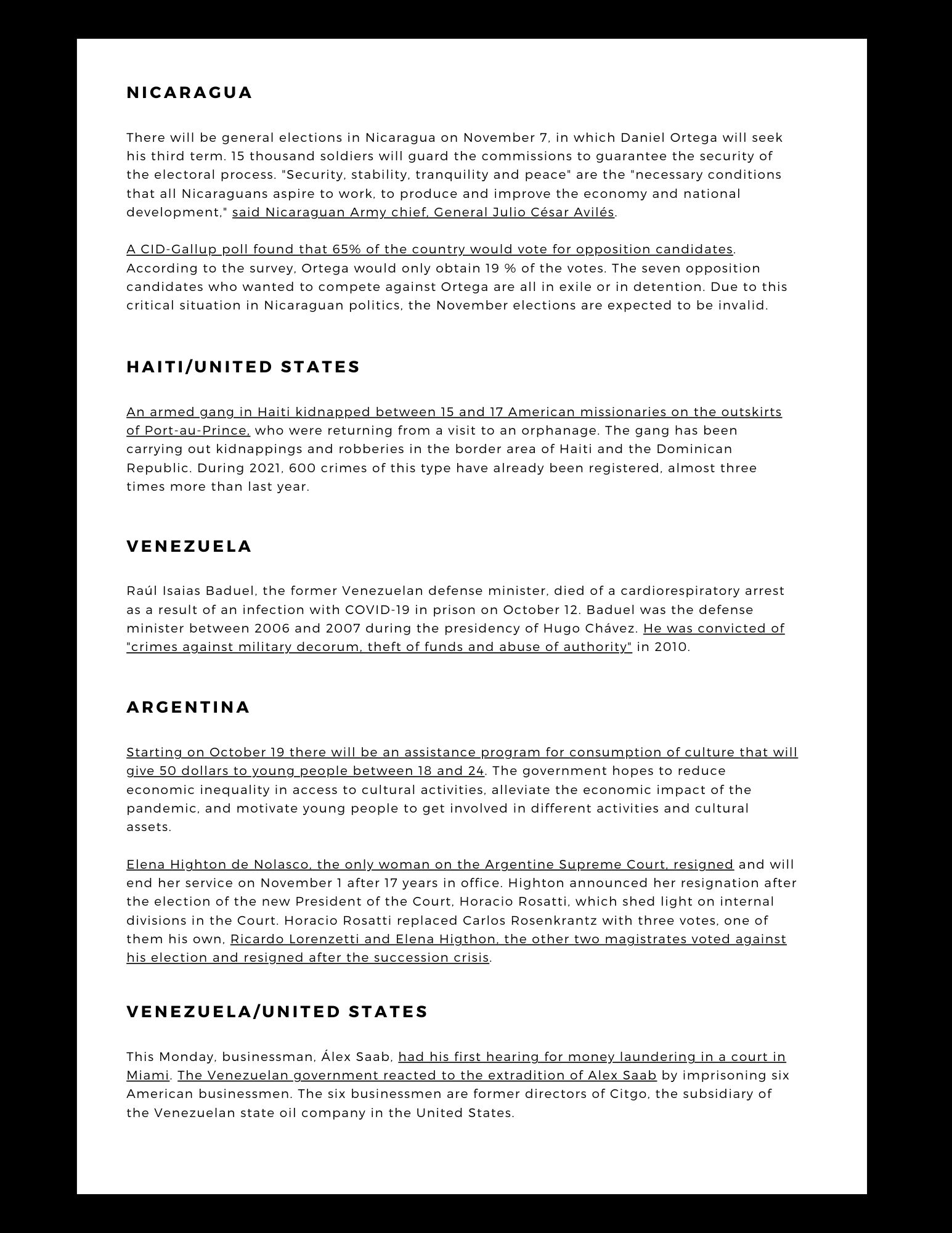 Edición 10/19/21 Posted bySusanne SchweitzerOctober 19, 2021October 19, 2021Posted inWeekly NewsletterTags:América Latina, boletín, Colombia, CorteIDH, defensora de derechos humanos, Diarios LatAm, El caso de Jineth Bedoya, La Corte Interamericana de Derechos Humanos, Latin America, Latinoamérica, Noticias, periodismo, periodista, Venezuela, violence against women, Violencia de género, Weekly Newsletter Join my Mailchimp audienceSubmitting form By clicking submit, you agree to share your email address with the site owner and Mailchimp to receive marketing, updates, and other emails from the site owner. Use the unsubscribe link in those emails to opt out at any time. Processing… Success! You're on the list. Whoops! There was an error and we couldn't process your subscription. Please reload the page and try again. Share this: Click to share on X (Opens in new window) X Click to share on Facebook (Opens in new window) Facebook Like Loading... Related